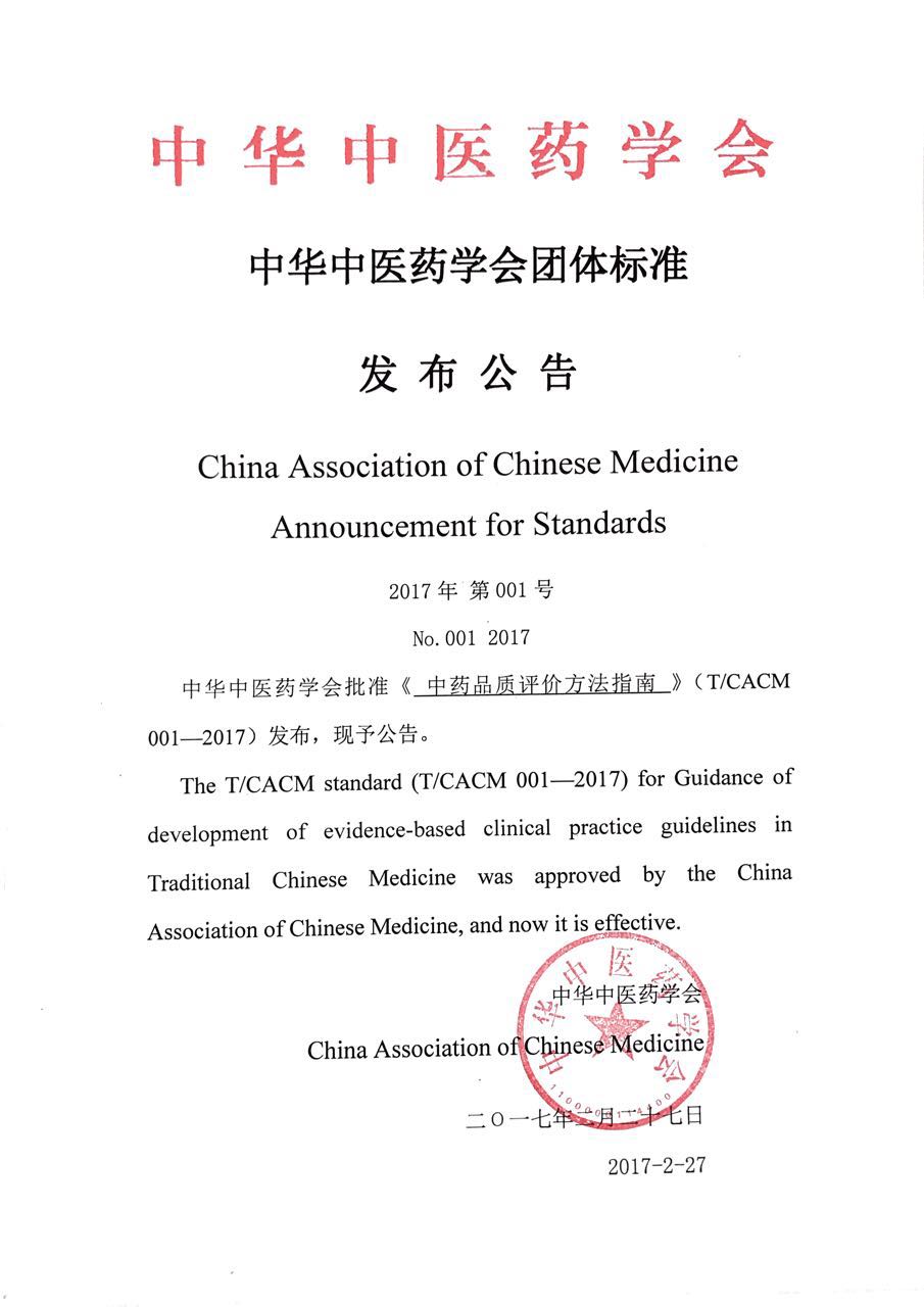 《中华中医药学会团体标准发布公告》