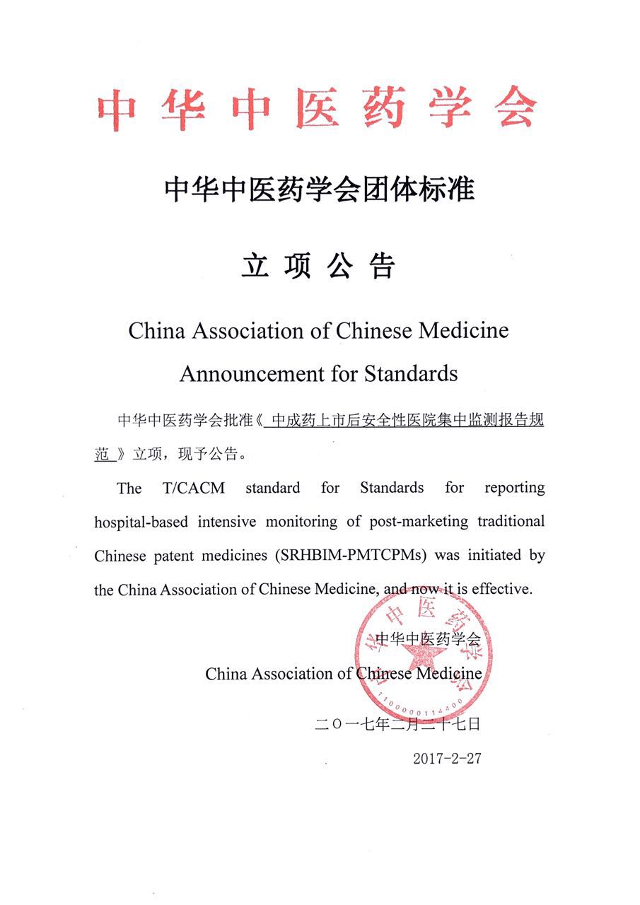 《中华中医药学会团体标准立项公告》