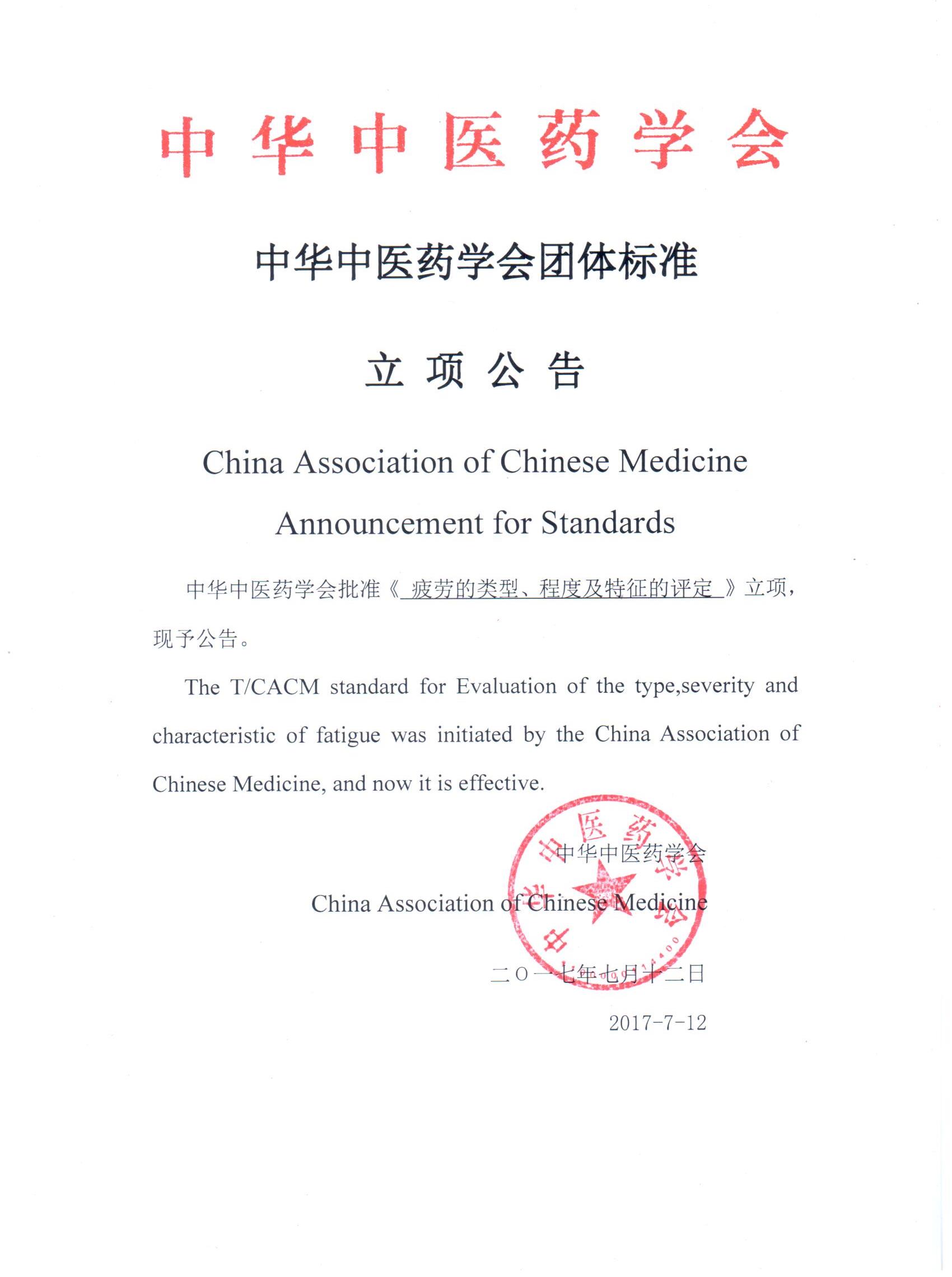 《疲劳的类型、程度及特征的评定》等3项团体标准立项公告