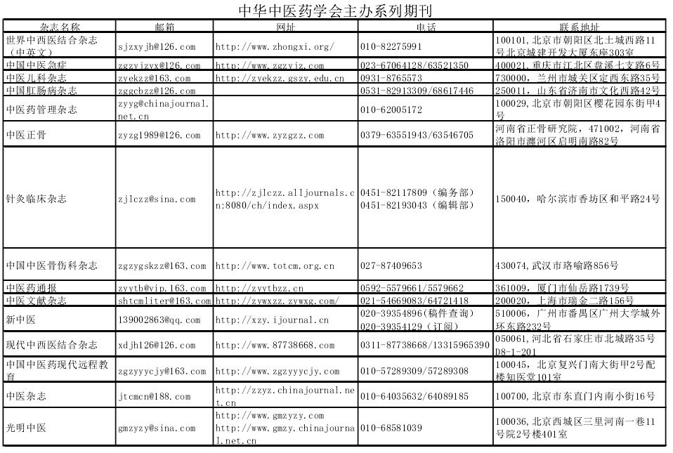 中华中医药学会主办系列期刊和联盟期刊汇总
