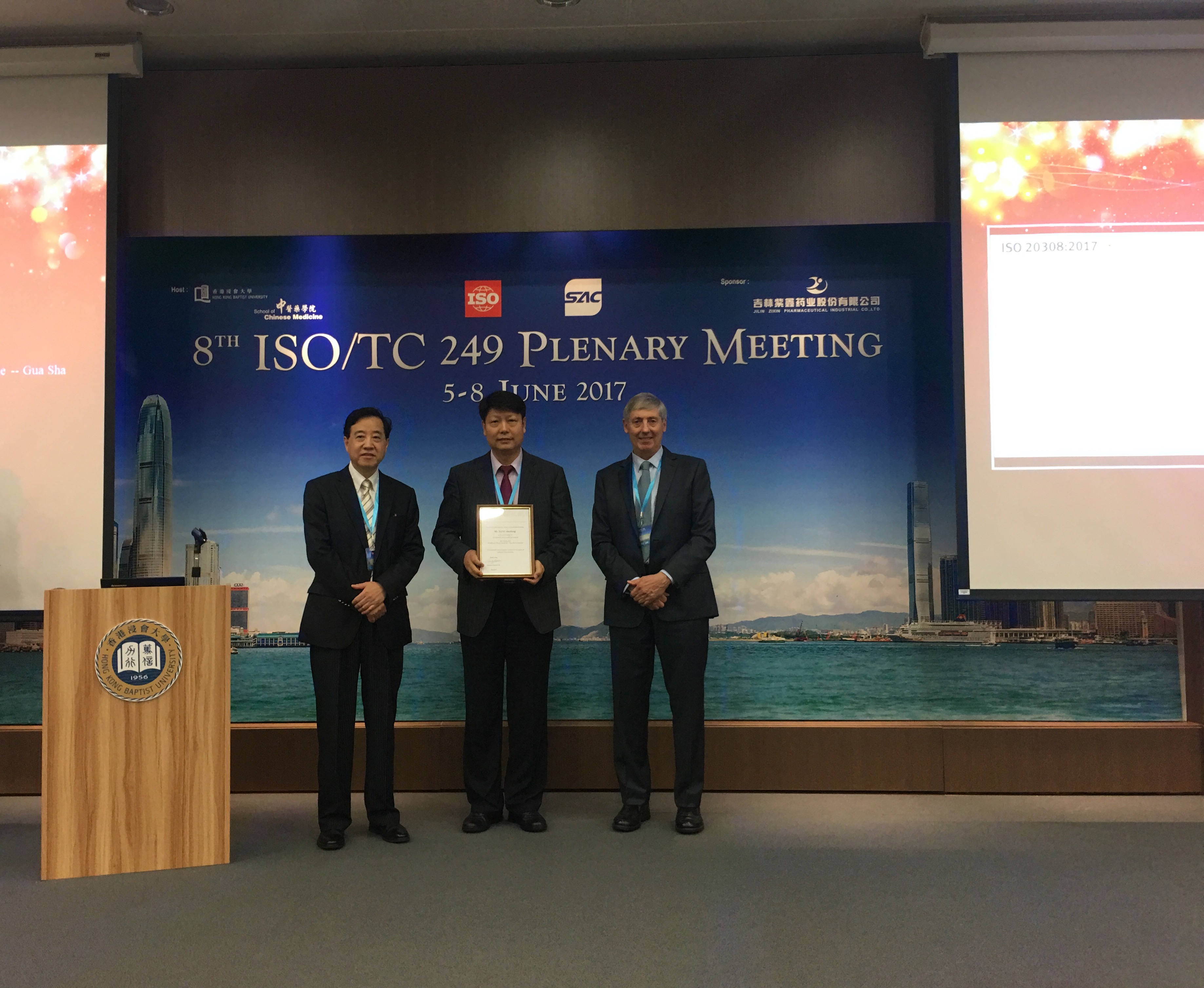 3.首次对刮痧技术操作进行规范,颁布行标1项、国标3项、国际标准1项:从术语、力度、方向等,规范刮痧手法,发布行业标准;规范定义、手法、操作步骤、适应症等,颁布国家标准。以“中医治未病”为导向,规范22个亚健康症状和9种体质刮痧,颁布国家职业标准。立项ISO/TC249“刮痧器具”国际标准,2017年已颁布实施。