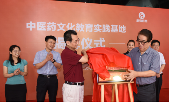 国医大师张大宁、中华中医药学会副秘书长孙永章为“中医药文化教育实践基地”揭牌