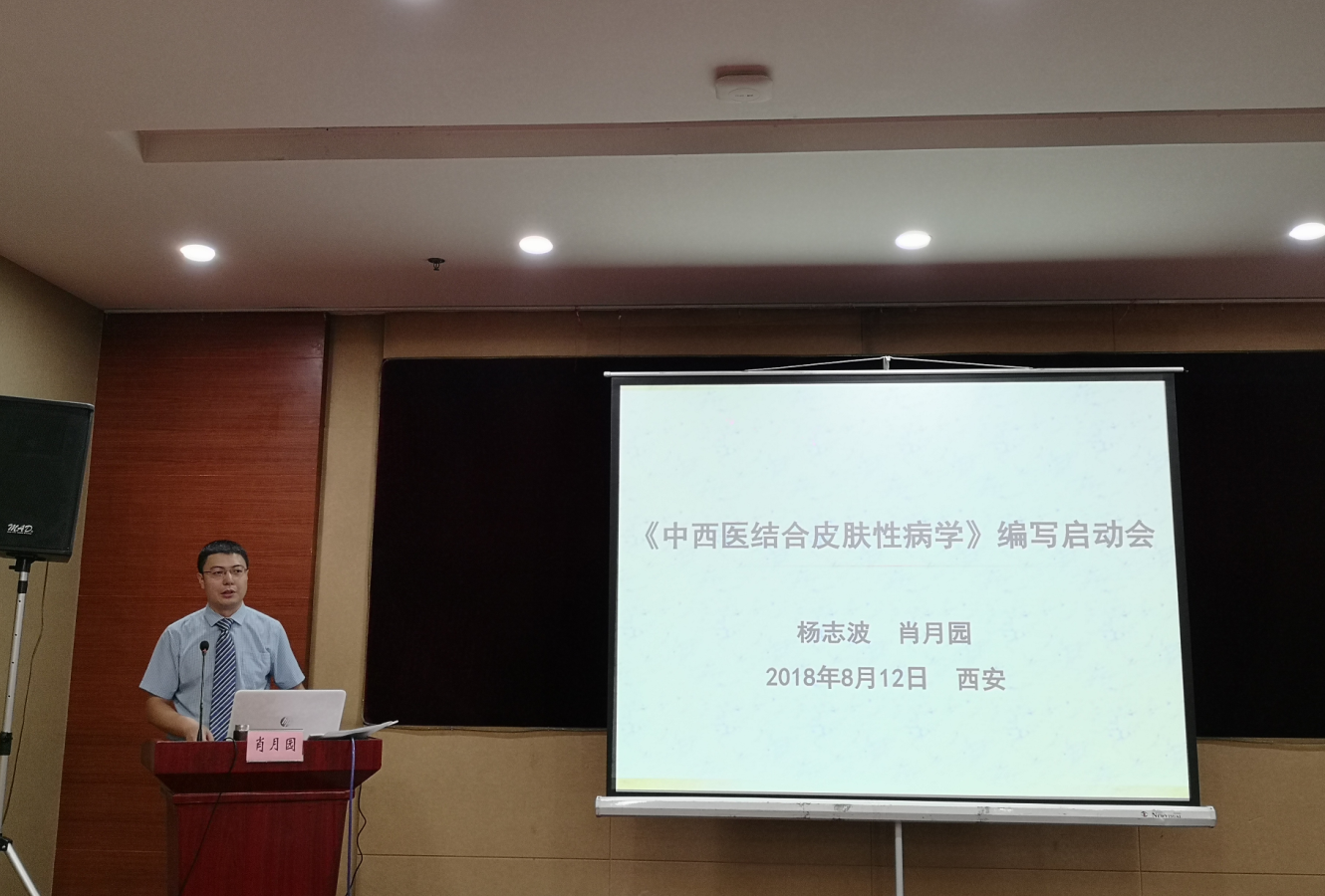 2018年8月12日由中华中医药学会皮肤科分会主任委员杨志波教授联合湖南科学技术出版社申报的“十三五国家重点图书、音像、电子出版规划”之《中西医结合皮肤性病学》编写启动会议在人杰地灵的十三朝古都西安市举行。中华中医药学会皮肤科分会主任委员杨志波教授,名誉主任委员段逸群教授,顾问范瑞强教授,副主任委员刘巧教授、李元文教授、李铁男教授、李斌教授、刁庆春教授、闫小宁教授、李领娥教授、杨素清教授、曾宪玉教授等和来自全国各地的中西医皮肤病专家近百人参加了本次编写会议。