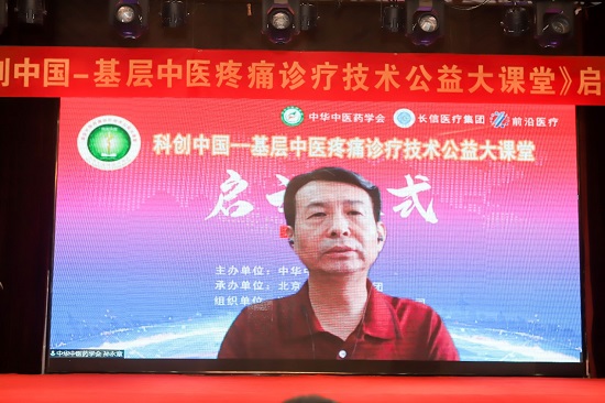 7月11日上午,由中华中医药学会主办的“科创中国——基层中医疼痛诊疗技术公益大课堂”(下称“大课堂”)启动仪式在山东淄博成功举办。中华中医药学会副秘书长孙永章,北京中医药大学东直门医院推拿疼痛诊疗中心主任、北京长信医疗集团董事长刘长信线上出席活动并致辞。淄博市卫健委党组成员、副主任孟玲,山东中医药学会疼痛专业委员会主任委员刘方铭,淄博前沿医疗器械有限公司总经理姚念民出席活动并讲话。中国人民解放军康复医学科副主任高谦、中日友好医院推拿科主任唐学章、南方医科大学南方医院介入诊疗科主任何晓峰等专家发来视频祝贺。