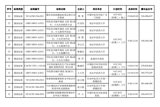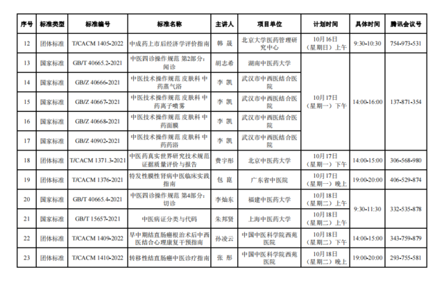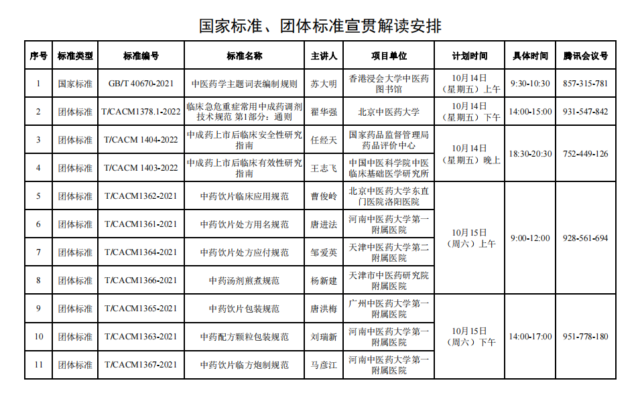 附件:中医国家标准、中华中医药学会团体标准宣贯解读安排