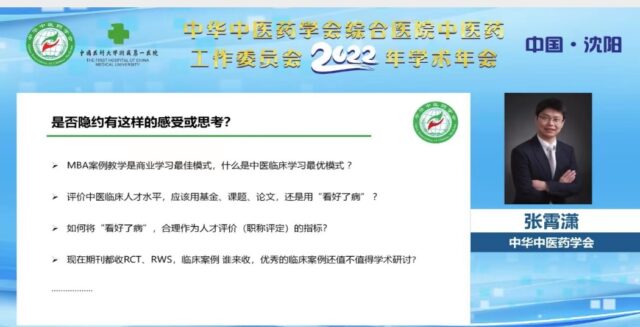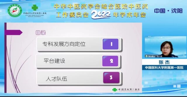 由中华中医药学会主办,中华中医药学会综合医院中医药工作委员会、中国医科大学附属第一医院承办的“中华中医药学会综合医院中医药工作委员会2022年学术年会”于2022年12月3日-4日在线上召开。国家中医药管理局中西医结合与少数民族医药司司长邴媛媛,中华中医药学会副会长兼秘书长王国辰,中国工程院院士、中国医科大学附属第一医院院长尚红,国医大师、辽宁中医药大学附属医院张静生,辽宁省卫健委中医综合处处长徐振东,辽宁省中医药学会会长曹建波,综合医院中医药工作委员会主任委员李怡,综合医院中医药工作委员会副主任委员张杰等出席开幕式。综合医院中医药工作委员会副主任委员兼秘书长冯兴中主持开幕式。来自全国各级综合医院及妇幼专科医院的中医药工作者700余人参加了会议。