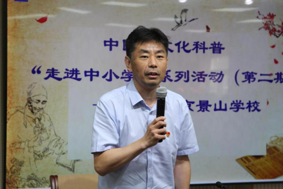 2023年6月12日,由中华中医药学会主办,中华中医药学会青年委员会、北京市青年联合会、东城区青年联合会和北京景山学校共同承办的“中医药文化科普‘走进中小学’系列活动”第二期在北京景山学校北校区举办。中华中医药学会科学普及部负责人、青年委员会主任委员张霄潇,北京景山学校党委副书记、校长邱悦,副校长卢广伟,东城团区委统战权益部负责人、区青联秘书长徐海龙,北京市青联医药卫生界别秘书长王鹏以及青委会委员、青联委员和北京景山学校师生共计110余人参加活动。活动由中华中医药学会青年委员会委员、北京市青联医药卫生界别副秘书长王景尚主持。