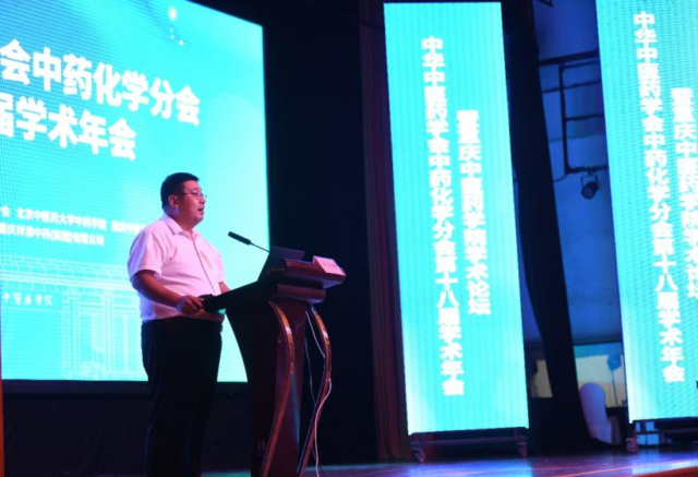 中华中医药学会副秘书长陈俊峰,重庆市卫健委副主任赵勇,重庆市科技局副局长许志鹏,重庆中医药学院党委书记周建军,中华中医药学会中药化学分会第五届委员会名誉主任委员雷海民、主任委员刘永刚等出席开幕式并致辞。开幕式由中药化学分会第五届委员会副主任委员曹纬国主持。