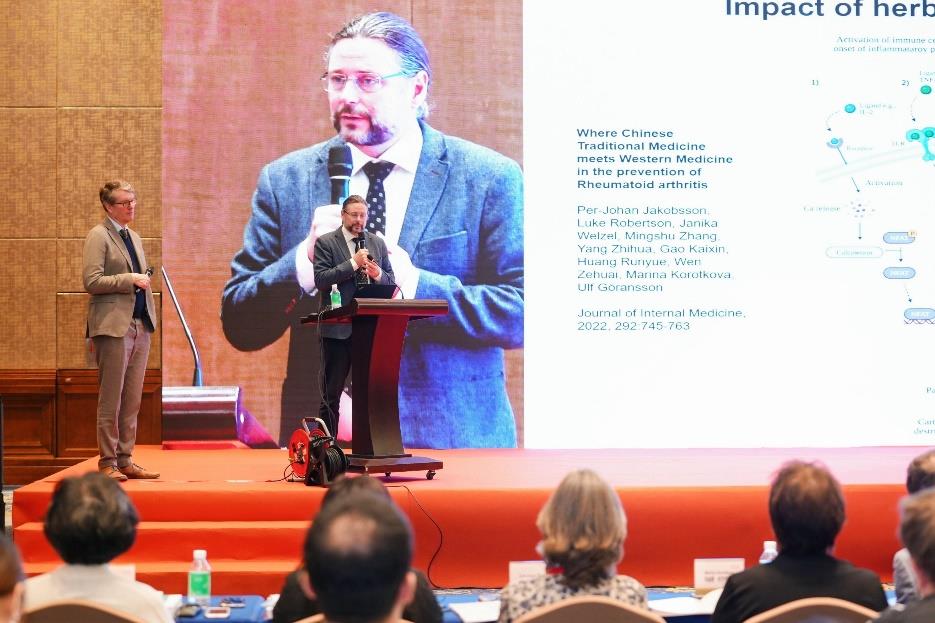 在圆桌会议环节,Per-Johan Jakobsson教授、Ulf Göransson教授、Lars Klareskog教授、Lars Bohlin教授、Michael Heinrich教授、Johan Rosengren教授、吕爱平教授、杨志敏教授、卢传坚教授、温泽淮教授、黄闰月教授聚焦“中西医交融”展开讨论,为中西医结合的研究和实践提供更多的思路和方法。