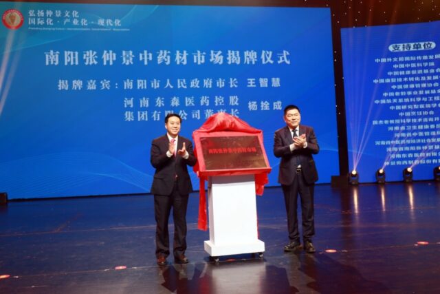 开幕式上,南阳市领导为张仲景经方阁俄罗斯联邦诊疗中心、日本诊疗中心、越南诊疗中心授牌,并为南阳张仲景中药材市场揭牌。