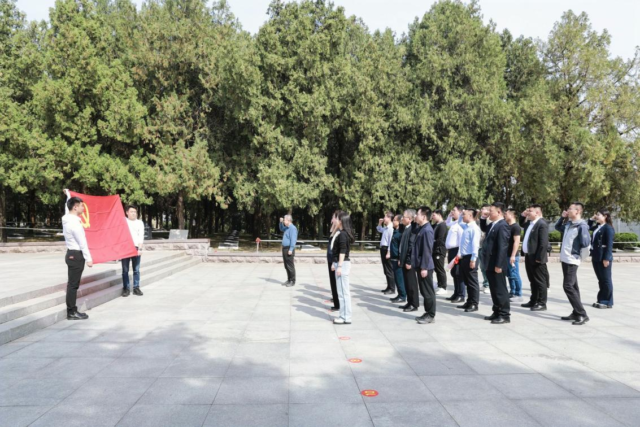 随后,工委会一行向粟裕将军墓、英烈纪念碑敬献花篮、吊唁烈士,并重温入党誓词。