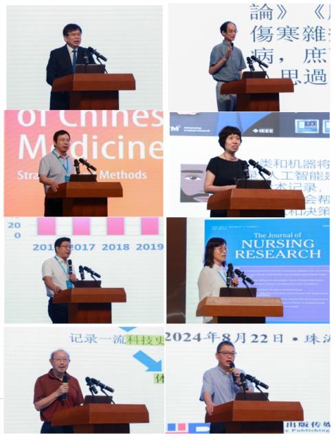 在主旨报告环节,共有10位专家进行了交流。中国工程院院士刘良作了题为“解读中医原创理论原理助力中医药科技创新”的报告;香港中文大学姜元安教授,做了“见病知源”的报告;澳门大学李绍平教授做了题为“从出版看澳门中药研究传承创新”的报告;中国科学院文献情报中心研究馆员刘筱敏教授做了“服务科研活动生命周期的学术出版探讨”的报告;《Chinese Medicine》杂志执行主编、澳门大学万建波教授做了“从Chinese Medicine的出版现状谈中医药论文的设计要点”的报告;上海体育大学期刊中心主任吴坚教授做了“固本培元 破圈生长——《运动与健康科学》办刊探索”的报告;南京农业大学程宗明教授做了“从零开始创办一本世界一流期刊:《园艺研究》的实践”的报告;科学出版社全资子公司北京中科期刊出版有限公司贾非编审做了题为“科学出版社——建设一流科技期刊集群的创新实践”的报告;上海中医药大学《中医药文化》杂志编辑部主任李海英编审做了题为“Journal of Ginseng Research对我国中医药英文期刊办刊的启示”的报告;中华中医药学会全资子公司北京中汇中医药杂志社运营总监肖云做了“中医药期刊集群出版平台介绍”的报告。