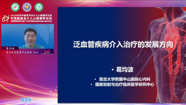 大会主论坛环节,中国科学院院士、复旦大学附属中山医院教授葛均波通过线上视频作了题为《泛血管疾病介入治疗的发展方向》的主旨报告,分享了泛血管疾病的概念与诊疗进展,提出了泛血管疾病领域跨尺度、多层次和时空多维度的系统性研究体系和理论-技术-器械产业研究范式,为泛血管疾病介入治疗提供了参考。