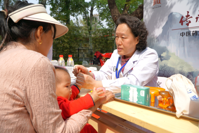 李阿姨带着小孙子找到了正在这里义诊的中华中医药学会小儿推拿外治分会主任委员、山东省中医院小儿推拿中心主任于娟。李阿姨的孙子得了血管瘤,手腕上有一块红斑。“孩子脾虚,我用小儿推拿的手法帮他补脾清肝,您回家后也可以给孩子试试。”一开始孩子不配合,一直闹脾气,但随着于娟推揉手指的动作,孩子渐渐安静下来,自顾自地玩儿了起来。
