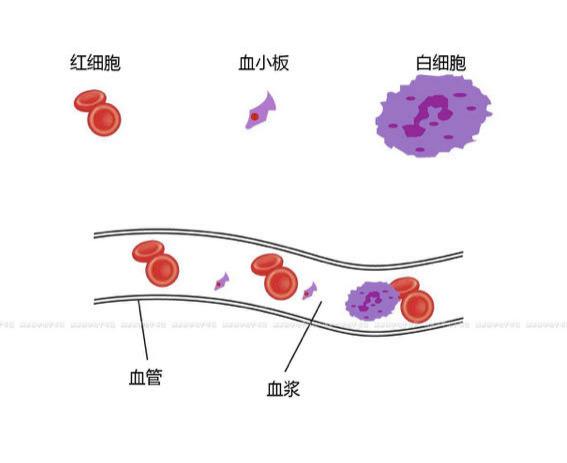 血液是在心脏和血管腔内循环流动的不透明的红色液体,由血浆和血细胞两部分组成。血浆,是浅黄色半透明的液体,约占血液总量的55 %。血细胞包括红细胞、白细胞和血小板,其中红细胞的数量最多,约占血细胞总数的99 %。